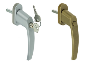 Klamki z kluczem lub przyciskiem dostępne w kolorach: biały, jasny brązowy, ciemny brązowy, srebrny, złoty, czarny, grafitowy